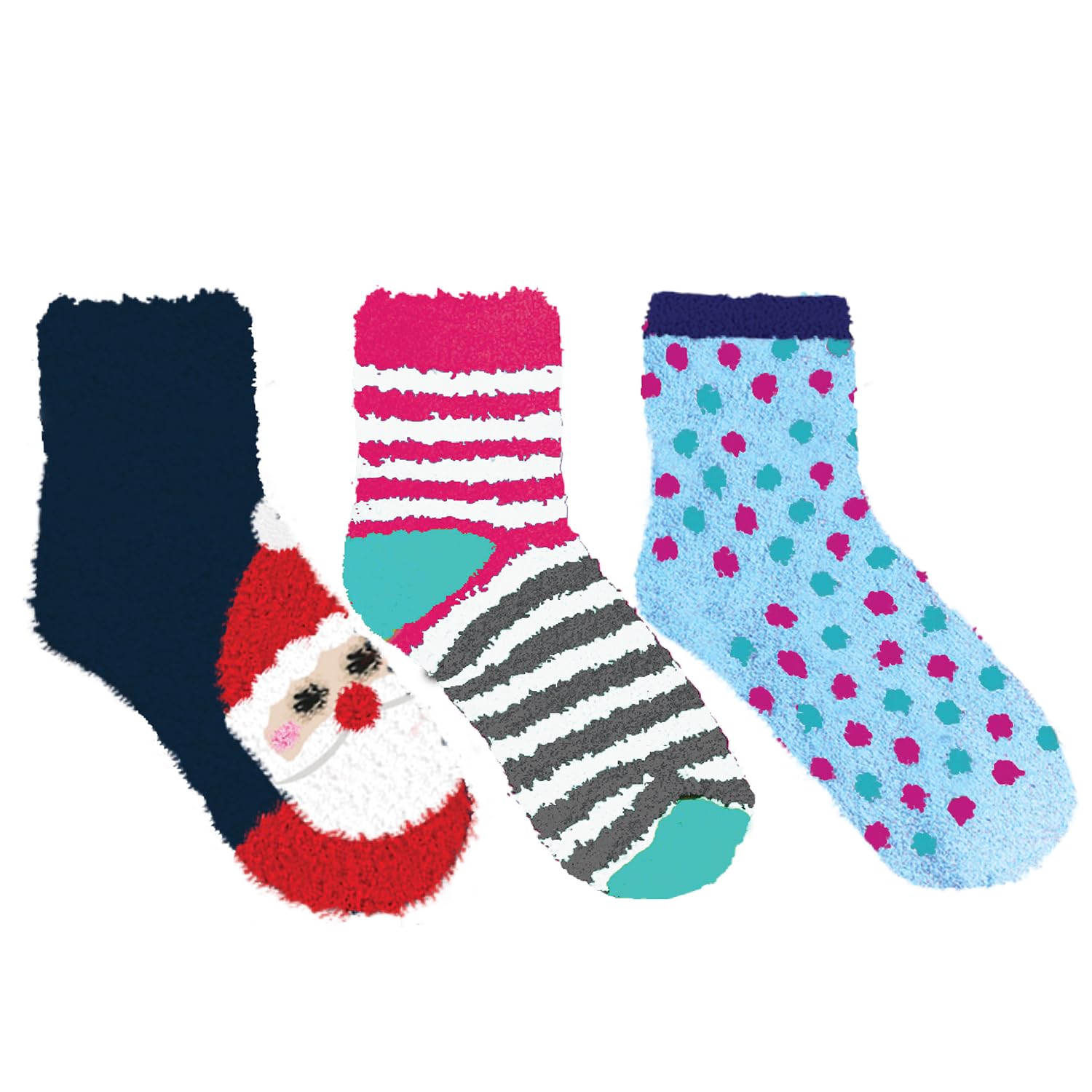Sockopath 3 Pair Christmas Cozy Socks for Women Girls Gifts Fun Fuzzy Warm Holiday – Shoe Size 4-10, SANTA CLAUS